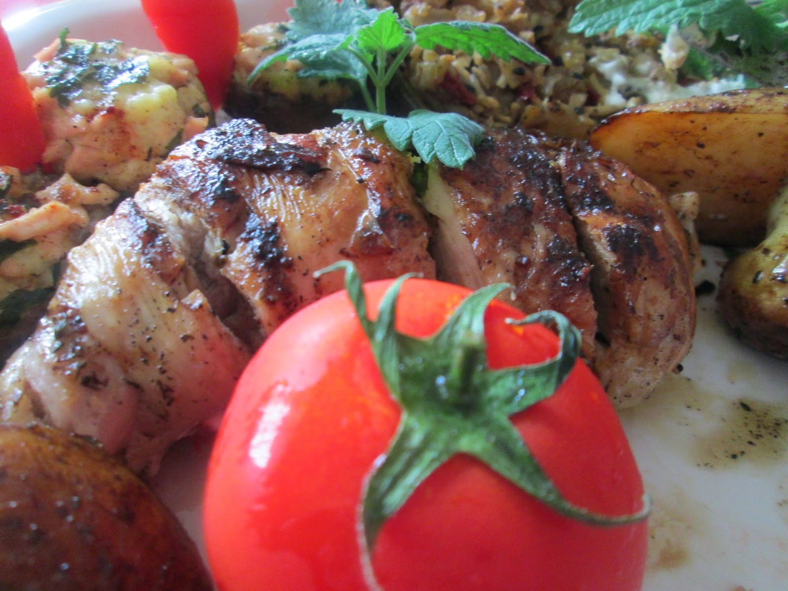 Pentru decor: patrunjel, menta proaspete si rosii.